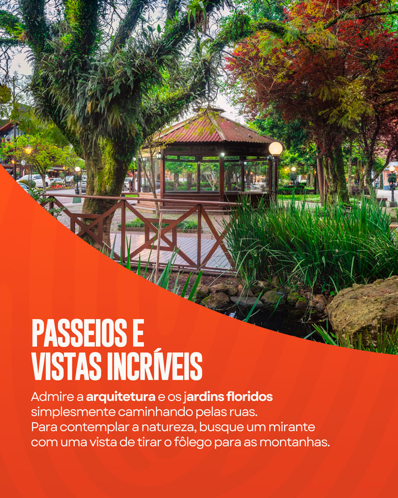Uma das cidades mais encantadoras do Brasil te convida para conhecer as ruas floridas, momentos de calma em meio à natureza, sabores marcantes da gastronomia local e um encanto único que só a Serra Gaúcha oferece.