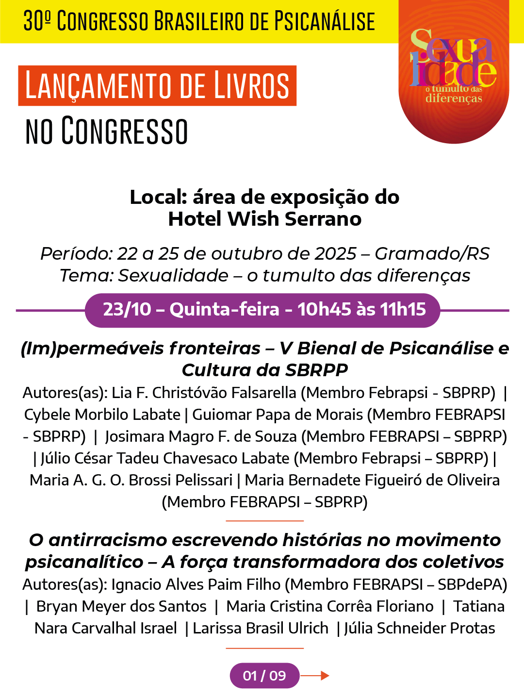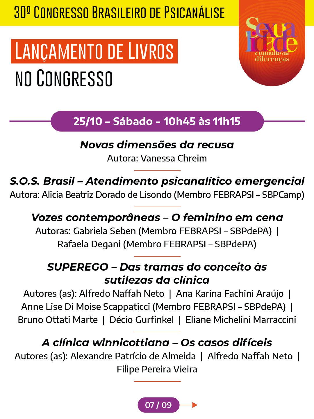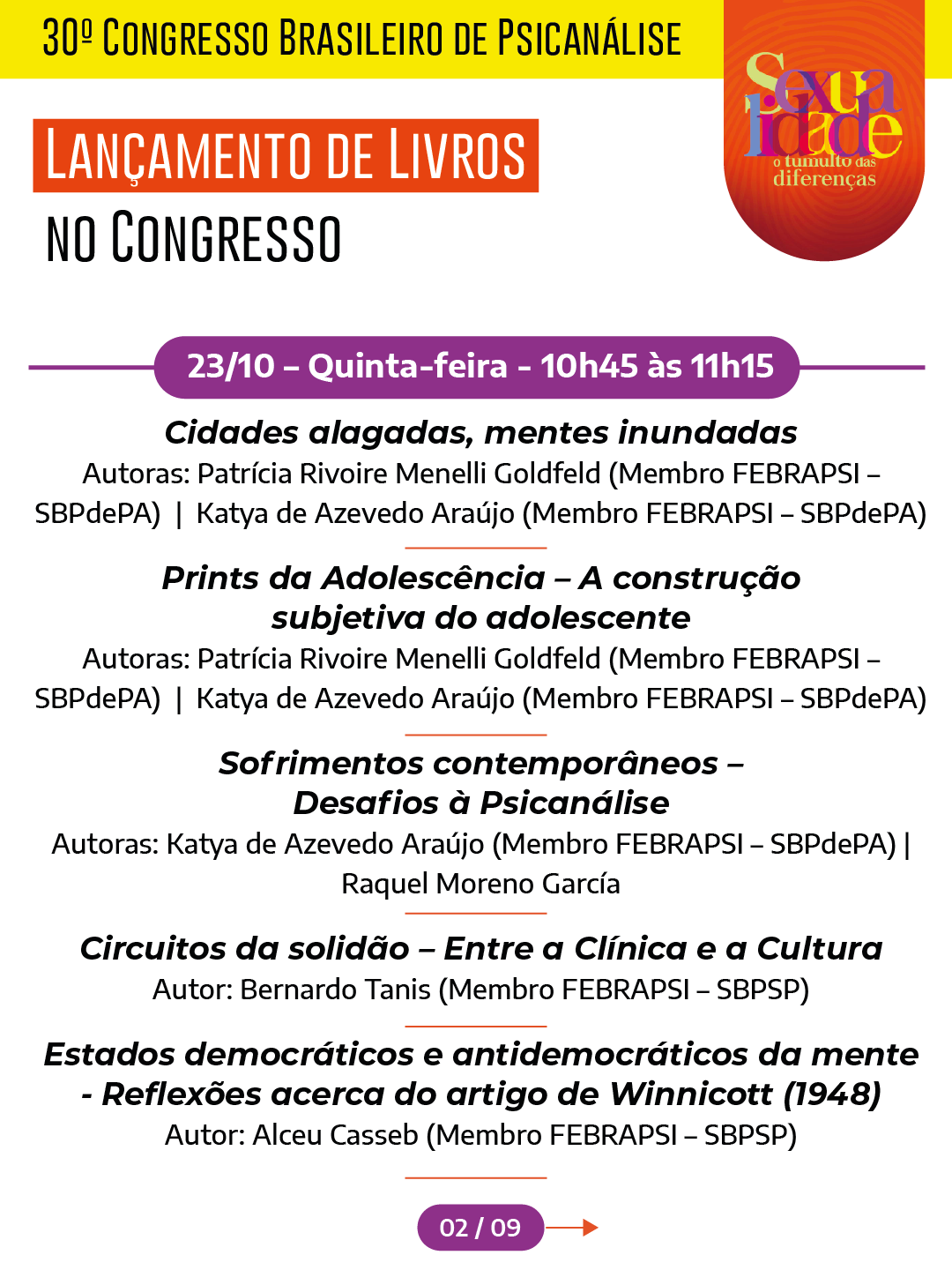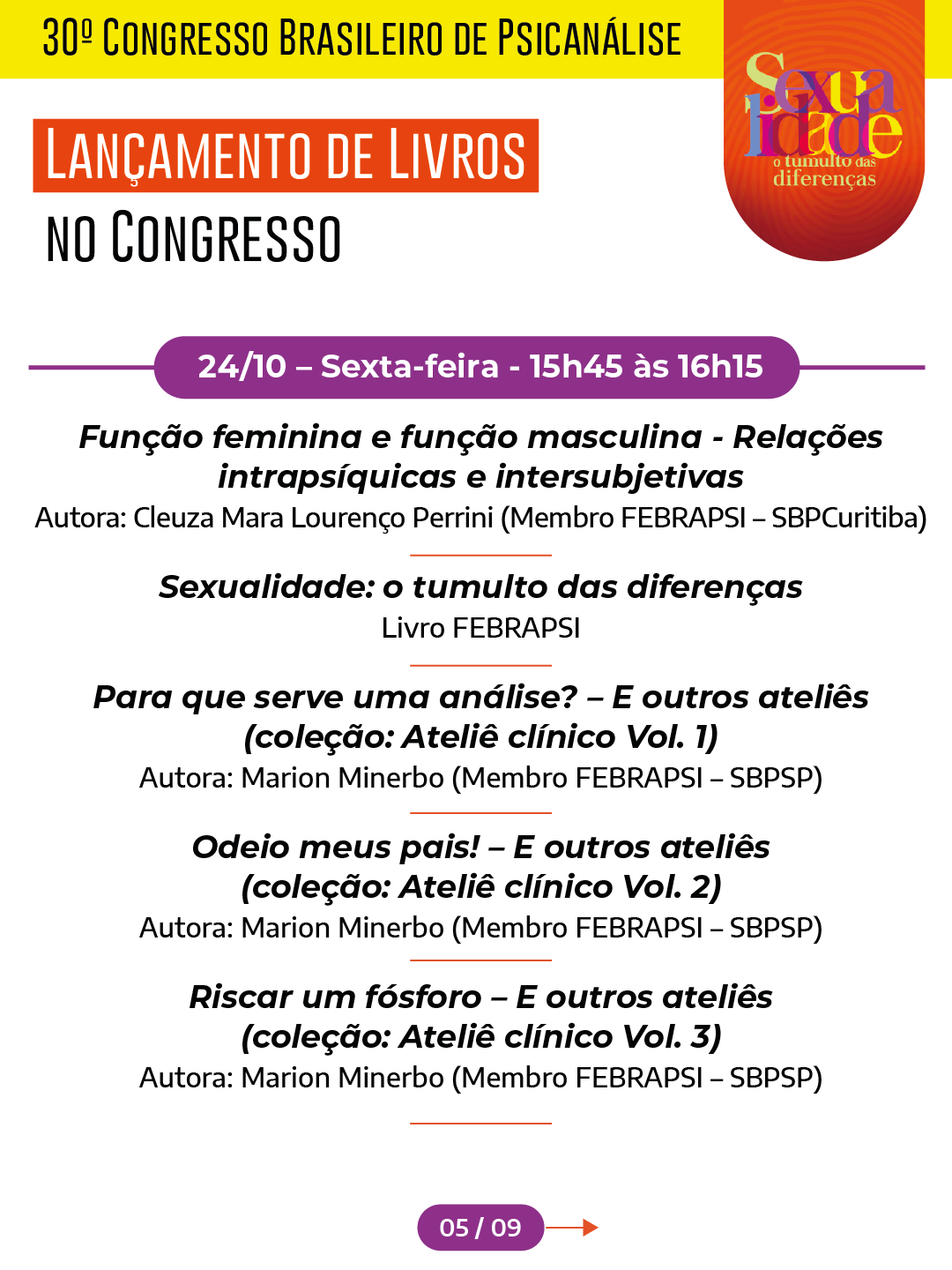No 30º Congresso Brasileiro de Psicanálise, serão apresentados 35 lançamentos que exploram diferentes temas, abordagens e nuances da prática clínica e da teoria.